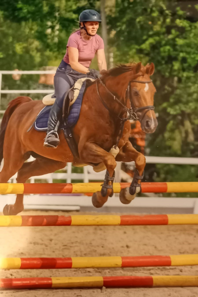 Hevostaustaa minulla on lapsesta asti ja aiempaa aktiivista kilpataustaa myös esteiden puolelta. Taukoa oli ruuhkavuosien aikaan kunnes tyttären harrastuksen myötä palasin takaisin harrastuksen pariin. Olen aktiivisesti mukana jokapäiväisessä hevosarjessa tyttären valmentautuessa ja kilpaillessa.